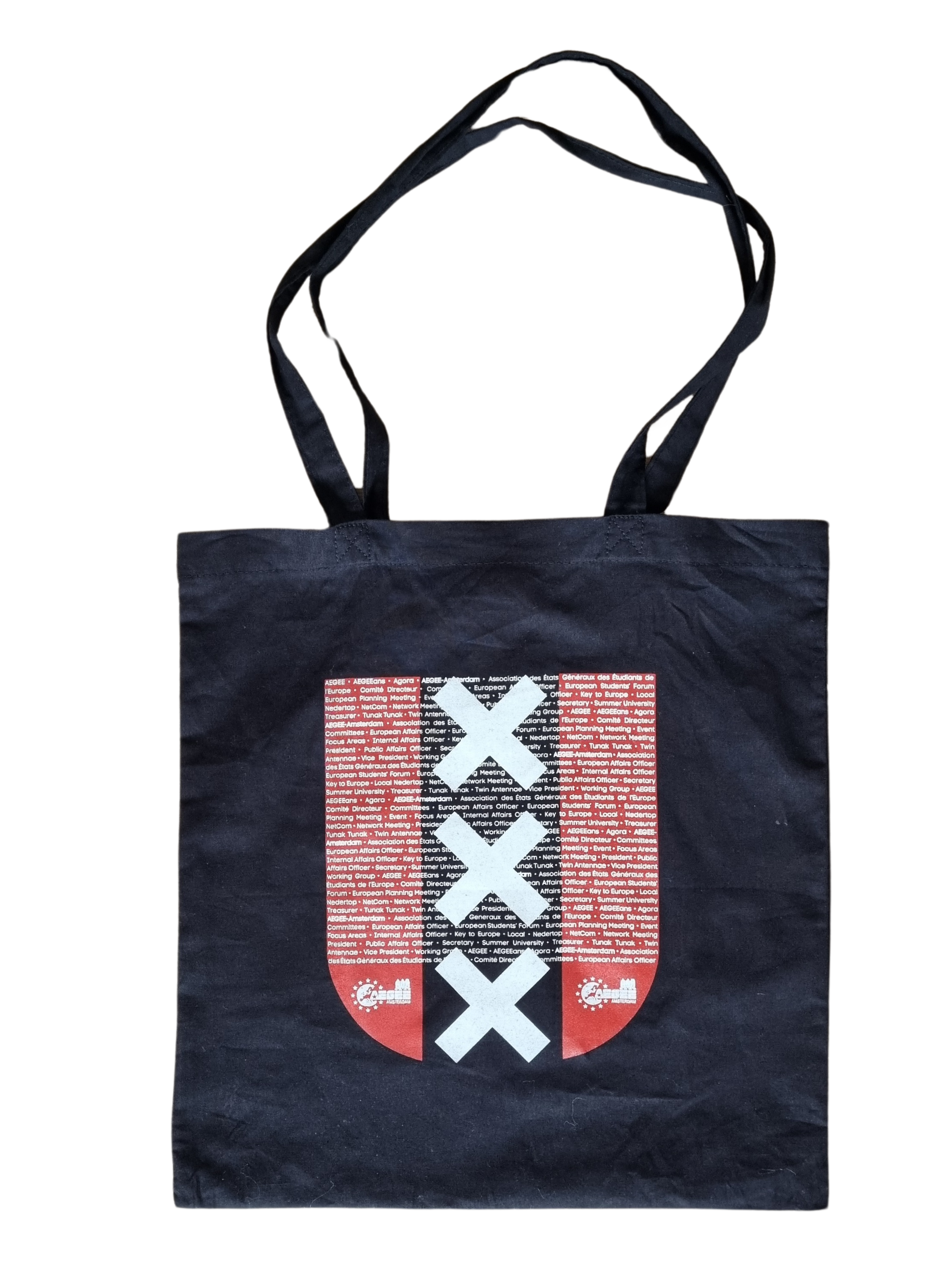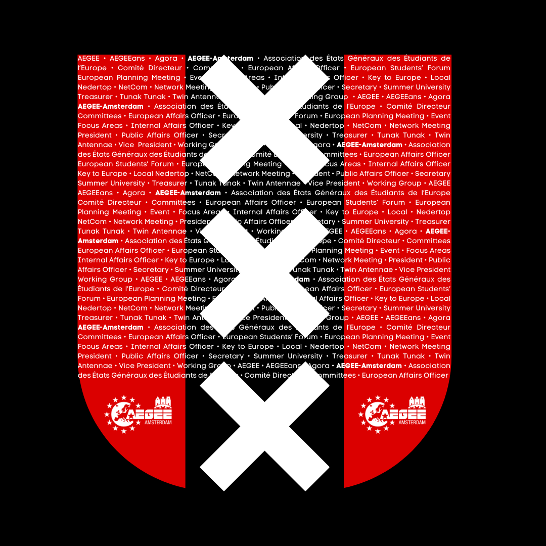 Altijd een stukje Amsterdam én een stukje Europa bij je hebben? Deze zwarte katoenen tas has got you covered! Op het tas is het wapen van onze prachtige stad Amsterdam afgebeeld met daarin woorden die te maken hebben met AEGEE. En natuurlijk ons eigen AEGEE-Amsterdam logo! Voor de prijs van een slok haver-cappu of 1 druppel natuurwijn is hij gewoon van jou…